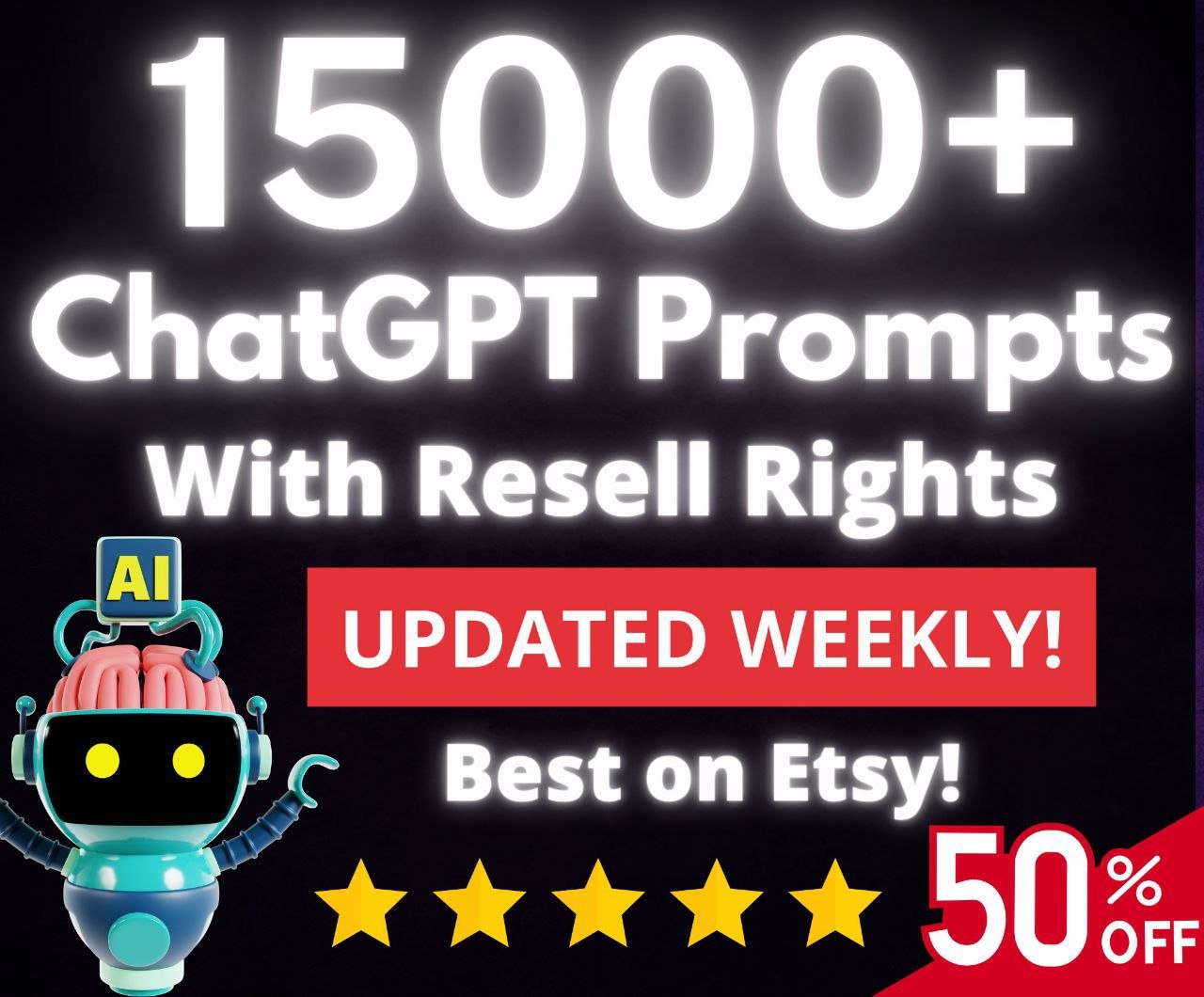 Sales Page: https://www.etsy.com/listing/1504800943/15000-chatgpt-prompts-with-resell-rights