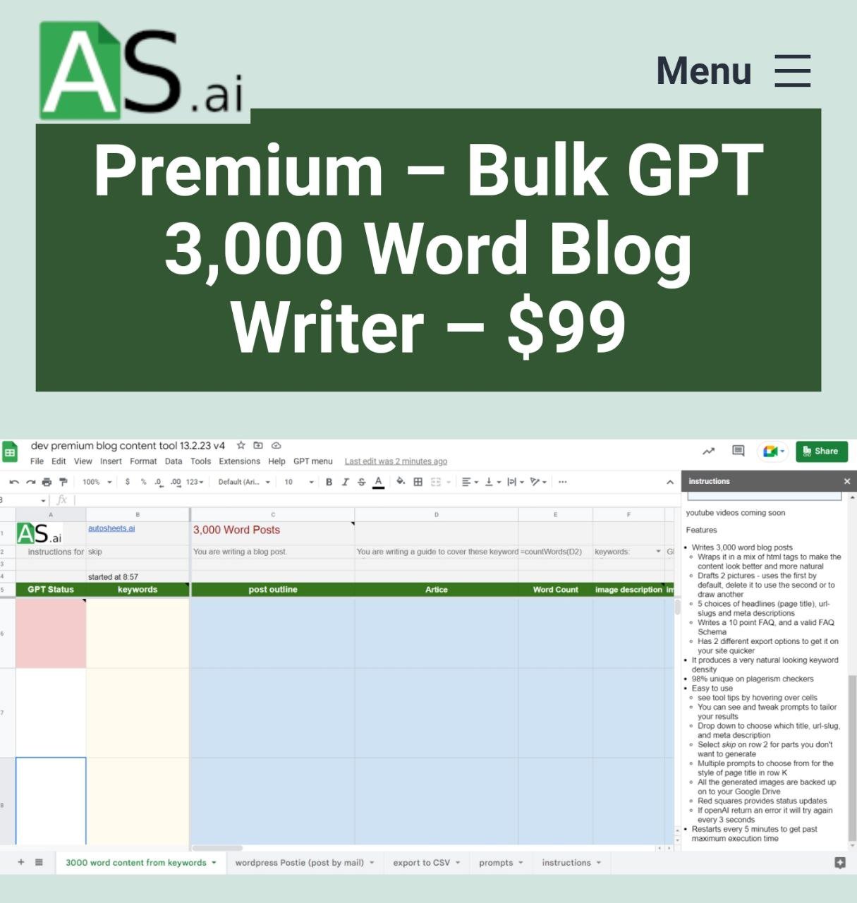Sales page: https://autosheets.ai/premium-3000-word-blog-writer
